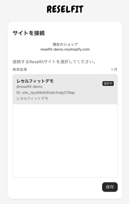 「サイトを接続する」ボタンをクリックし、連携したいレセルフィットサイトを選択し、「保存」をクリックします。